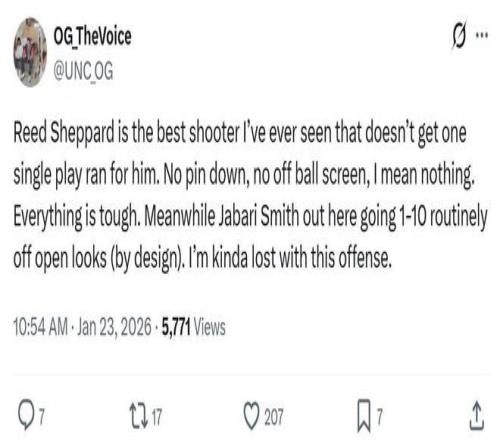 并不是只有Bradeaux一位火箭媒体人感到不解,大量火箭媒体人与当地资深球迷发声表达质疑,不理解为何谢泼德如此出色的三分手,却在进攻体系中完全无法获得任何战术安排。