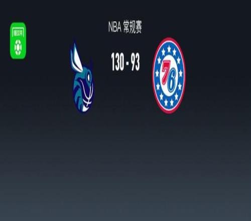 第四节黄蜂萨隆拿下7分,76人麦凯恩拿下12分,最终黄蜂130-93战胜76人